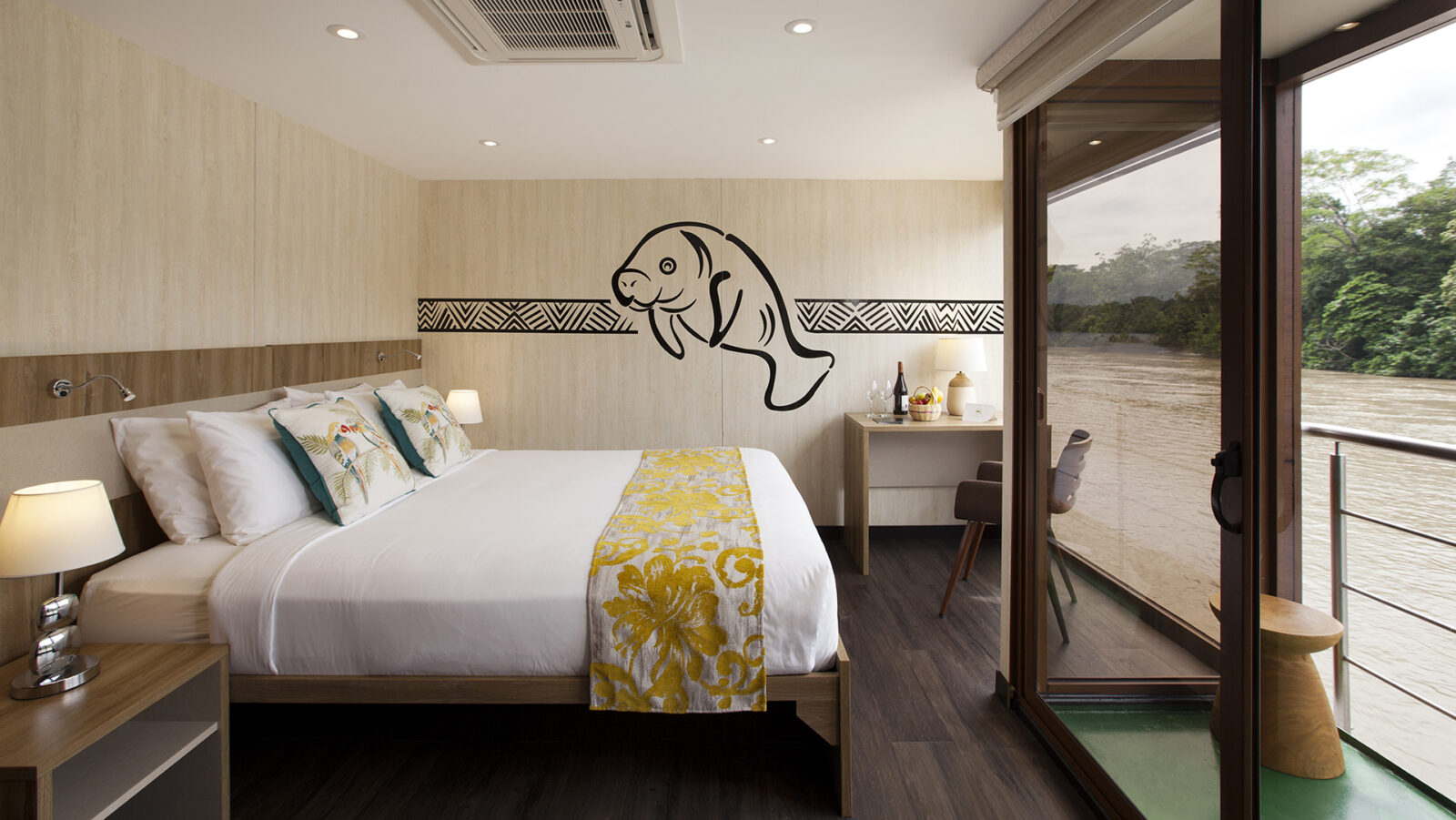 On board the Manatee Amazon Explorer, guests enjoy comfortable accommodations, panoramic river views, and relaxed downtime between excursions. Meals highlight local flavours, while shared spaces offer opportunities to reflect on the day’s discoveries, review wildlife sightings, or simply watch the jungle drift by.