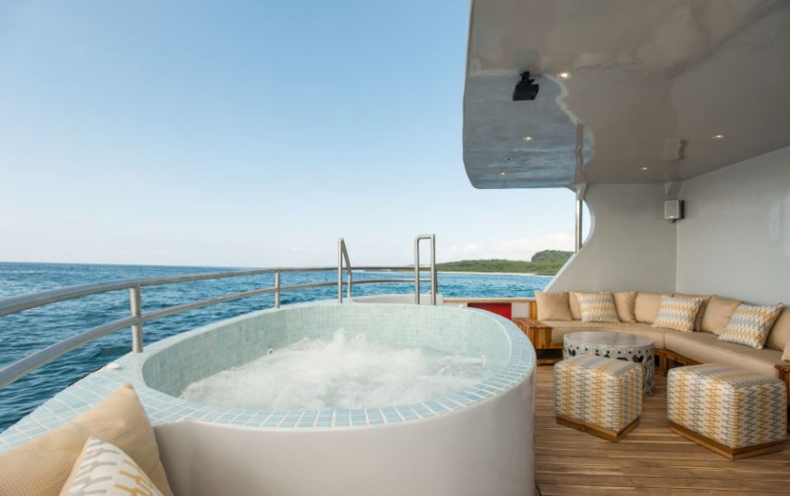 The Galápagos Islands are best known for their diverse array of plant and animal species which many are not found anywhere else in the world. From the bow of the luxury vessel, search the coastline for bottlenose dolphins.