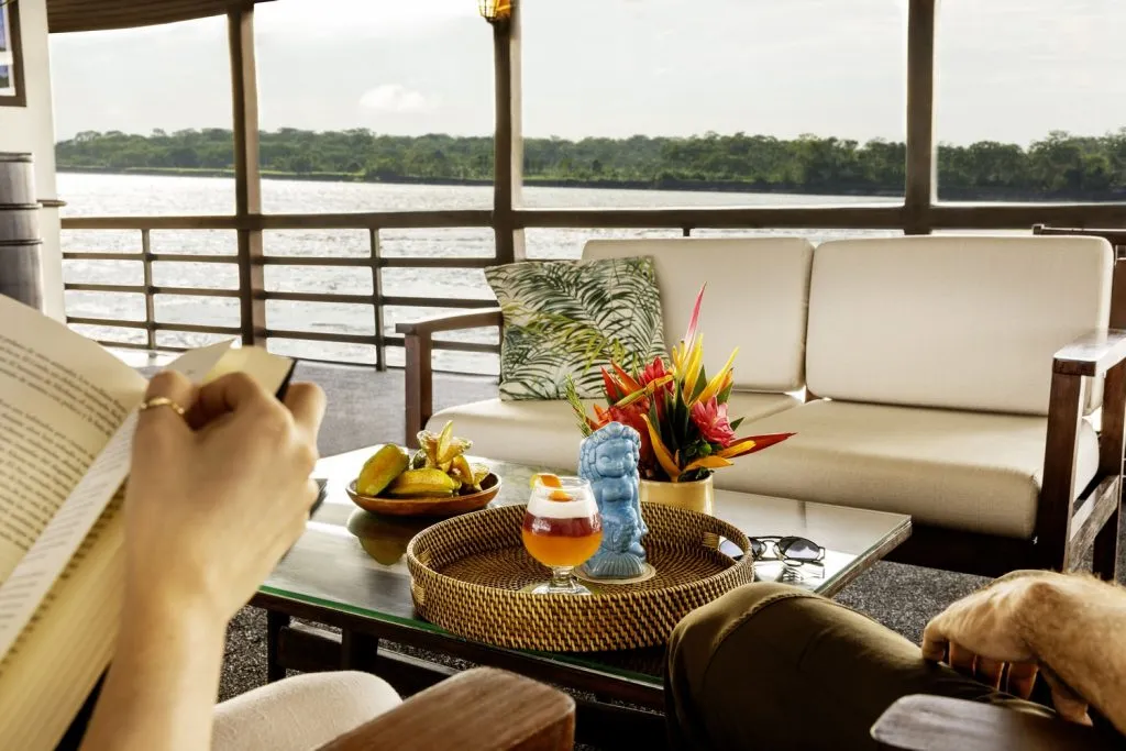 Measuring approximately 38 metres in length and designed for shallow-draft navigation, Amatista is perfectly suited for cruising the Amazon and its remote tributaries. The vessel accommodates up to 30 guests in 15 air-conditioned cabins, each featuring private en-suite bathrooms and large exterior windows that provide uninterrupted views of the surrounding jungle and river life. Onboard facilities include a welcoming dining room, an indoor lounge and bar, and a spacious observation deck where guests can relax while spotting wildlife or enjoying sunset views over the rainforest canopy.