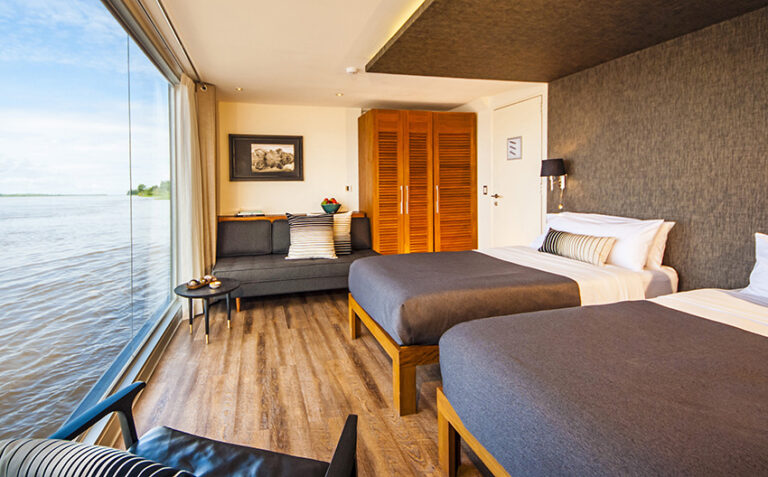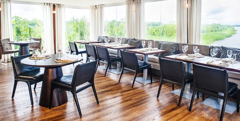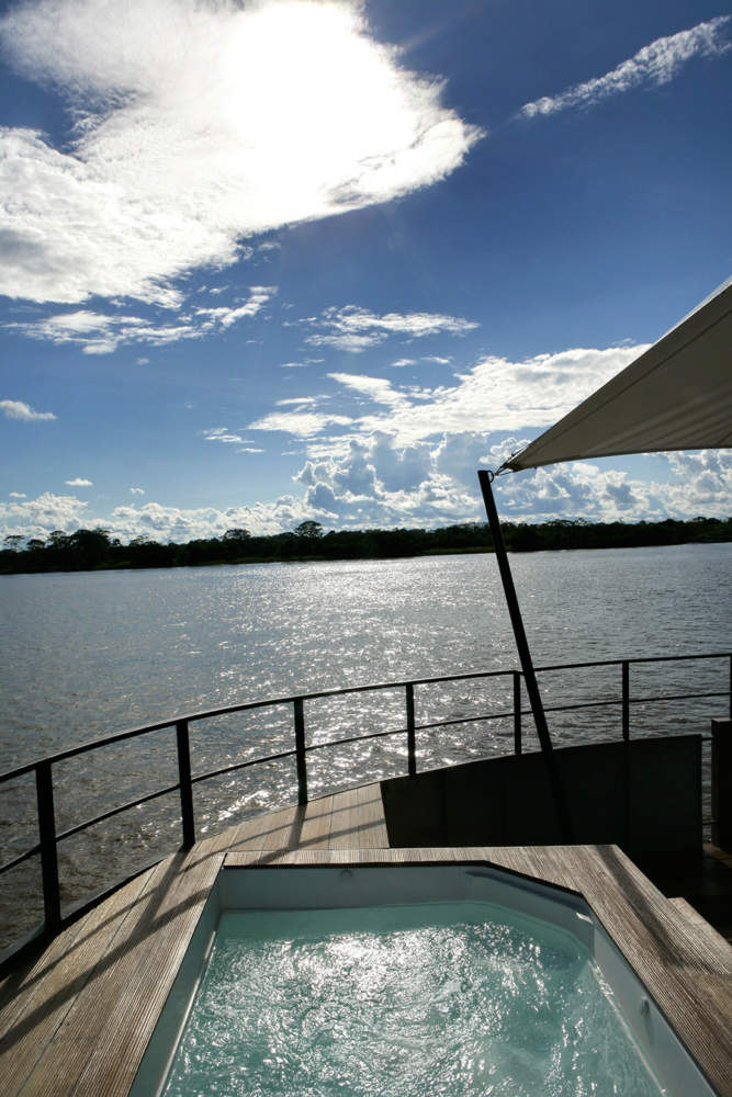 On board, 16 spacious suites with floor-to-ceiling windows give guests a full view of the Amazon’s majestic river and rainforests. The top deck features ample amenities that include a jacuzzi, indoor lounge and bar, and an outdoor observation deck. In the dining room, guests also savor the best of Peruvian cuisine with a comprehensive dining menu created by Pedro Miguel Schiaffino, one of Peru’s most accomplished chefs known for using produce and ingredients from the Peruvian Amazon.