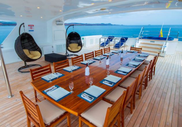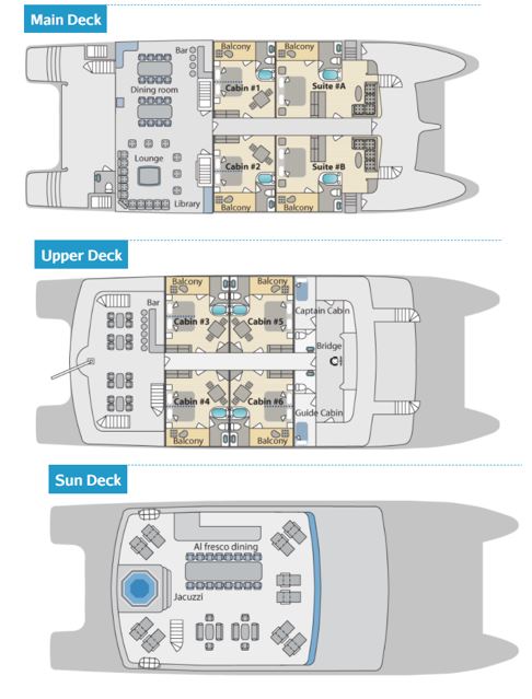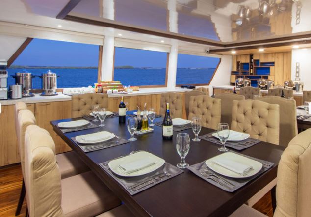 Trust the luxury experience and glowing reputation of the Cormorant I Catamaran. This catamaran is one of the best ways for travelers to enjoy the wonders of the Galapagos Islands in elegance and comfort with the ones you love most. This modern catamaran accommodates 16 passengers in luxury cabins and suites, all with private balconies, panoramic windows, and luxury amenities. Additionally, spacious social areas include two well-attended bars, briefing room, indoor dining room, alfresco dining area, and a panoramic sundeck with a jacuzzi.