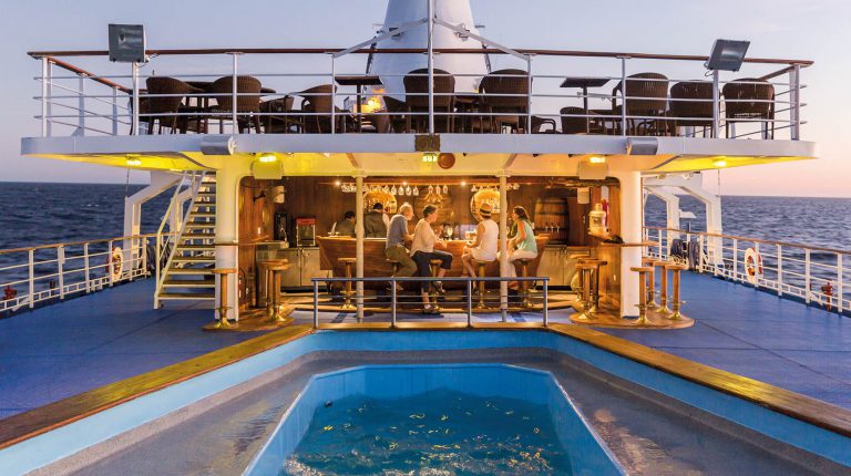 There is an acclaimed Lonesome George Restaurant that will surprise you with its wide range of mouth-watering, culinary delights. Using fresh ingredients, it serves a high level of international and local cuisine from professional chefs. With an a la carte dinner, there are plenty of options for everyone. The fisherman’s bar features cold, local, craft beer, a variety of cocktails and cold sparkling wines to enjoy beside the only shipboard pool in the entire archipelago.
