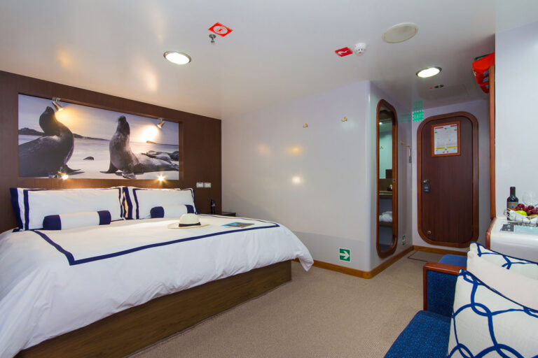 The classic Catamaran Ocean Spray offers the exceptional performance and comfort in the Galapagos cruising and has a sleek, redesigned interior. The 16-passenger vessel was conceived for comfort and stability, offering plenty of space per guest onboard with high-end facilities and amenities. The elegant design includes an ample shaded sundeck with Jacuzzi and sun chairs to give the guests the opportunity to relax themselves while they are on board. Each cabin has sweeping ocean views from all suites and private balconies. The spacious cabins each with a private balcony, her speed, comfort, top guides and itineraries will make this vessel perfect for your luxury Galapagos cruise. Kayaks and paddleboards are also available for use. Cruise itineraries onboard range from a 3-night experience to a 7-night cruise where you will thoroughly explore the Galapagos from end-to-end.
